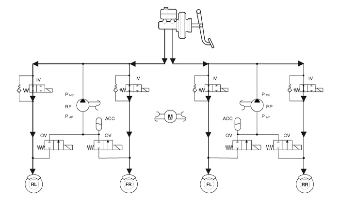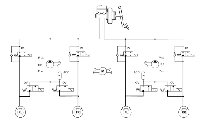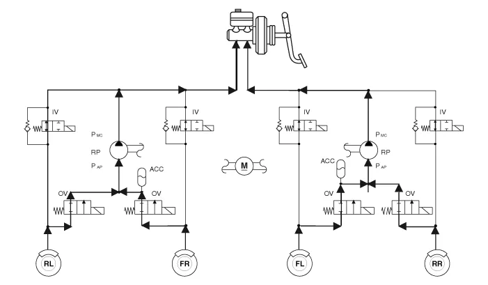 – Input of signal from the wheel speed sensors attached to each wheel.
