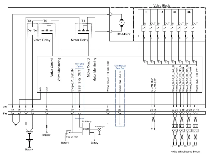 | 38 | Ground for solenoid valves and ECU | 15A | 2A |