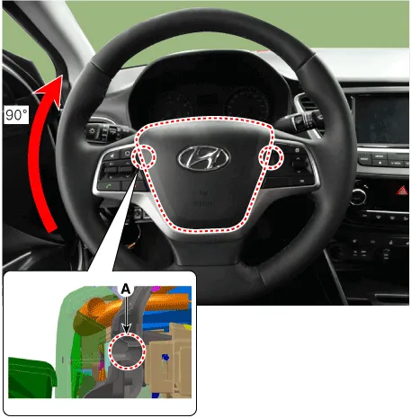 • When install the Driver Airbag (DAB) module, Fix the horn wire and DAB inflator wire tightly with wire clip (A).