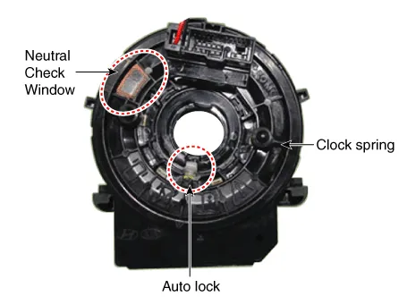 • Clock SpringClock spring delivers actuation signal, generated by the sensors installed in the front and right/left sides of a vehicle, to the inflator (gas generator) of the driver air bag module via internal cable.It also delivers actuation signal of the steering wheel remote control switch and horn to relevant systems via internal cable.