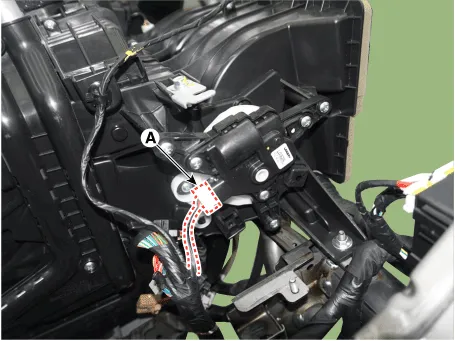 (1)Disconnect the mode actuator connector (A) and remove the wiring mounting clips.