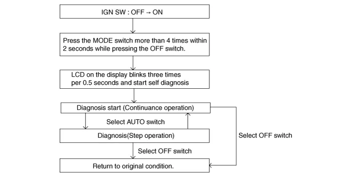 • When operating the self-diagnostics, the below fault (self-diagnostics code) will blink at 0.5 seconds interval on the temperature display settings (driver's side only) and the remaining symbols are OFF .