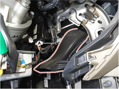 5.Remove the driver's side shower duct (A) after loosening the screw.