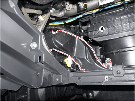 7.Remove the passenger's side shower duct (A) after loosening the screw.