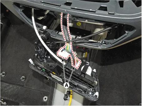 10.Disconnect the A/C & heater controller connectors (A).