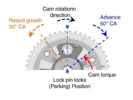 | Default position: Middle CVVT operates in advanced / retarded directions. |