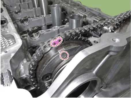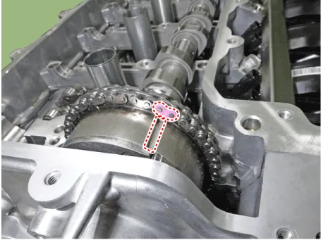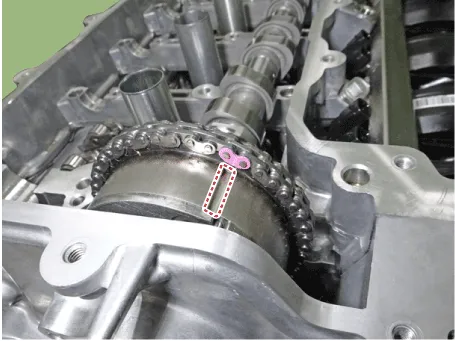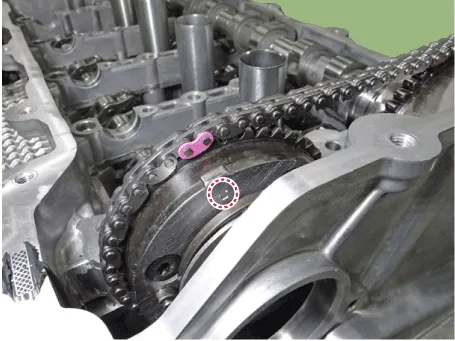 4.Mark the timing chain links corresponding to the timing marks on the intake and exhaust CVVT with a indelible marker.