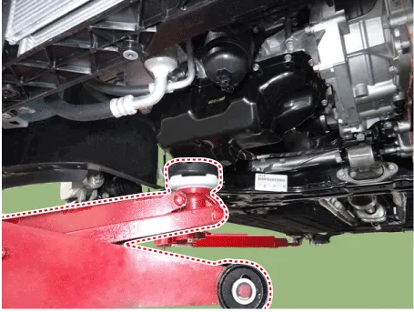 9.Install the jack to the edge of oil pan