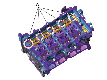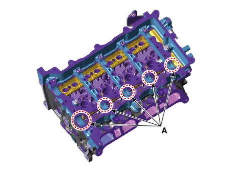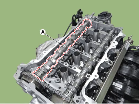 • When installing the intake camshaft, spray the engine oil to the camshaft journal installing part (A) of the cam carrier.The amount of application should be enough to flow down both the front and back sides when it is applied to the center.