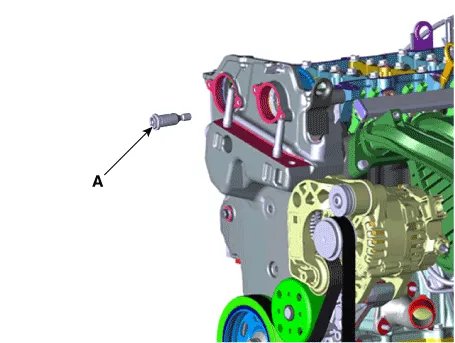 16.Remove the intake oil control valve (OCV) and center bolt (A).