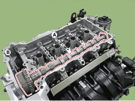 1.Install the intake camshaft (A) and intake CVVT (B).