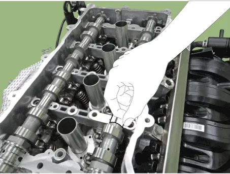 • To prevent impurities from entering exhaust oil control valve (OCV) & center bolt, wear rubber gloves.