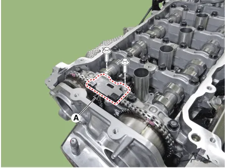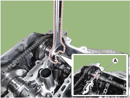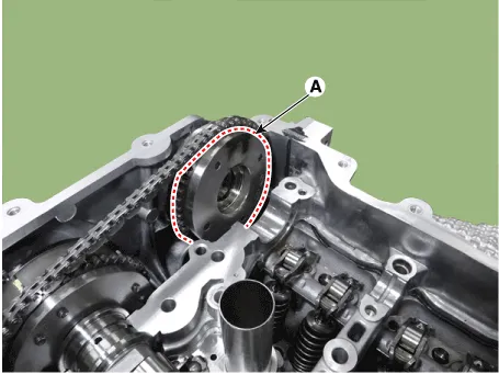 15.Remove the exhaust CVVT (A) from the timing chain.