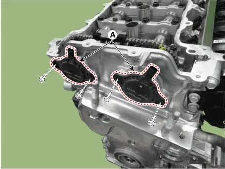 8.Remove the fine gimlets (A) that hold the timing chain tensioner.