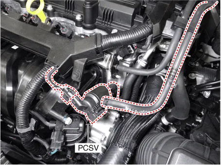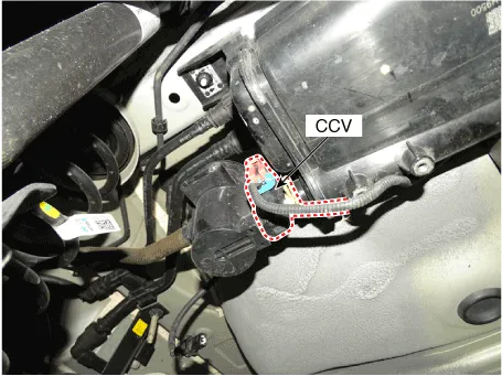 5.Disconnect the vapor hose connected with the canister from the CCV.