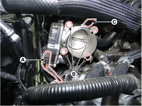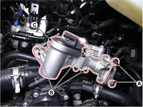 5.Remove the EEGR control valve (C) after removing the mounting bolts (B).