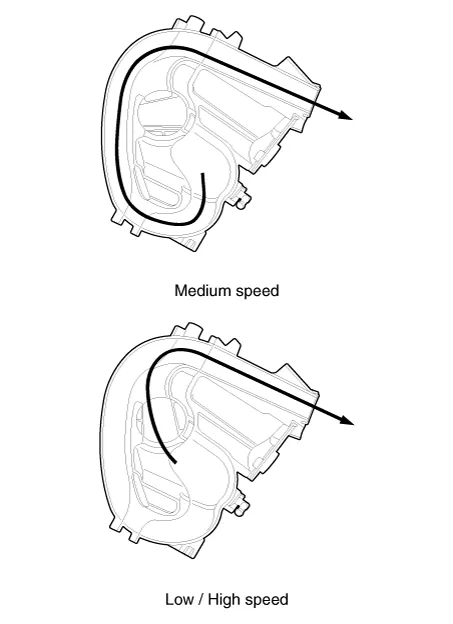 Low / High speedOpenMinimizing intake resistance by shortening intake manifold length and increasing area of air entrance