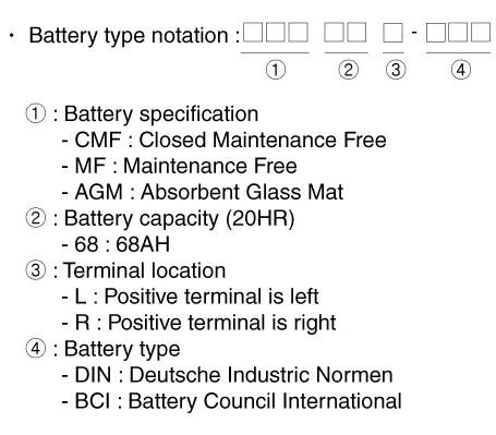 - Specification Battery▷ AGM60L-DINItemSpecification Capacity [20HR / 5HR] (AH)60 / 48 Cold Cranking Amperage (A)640 (SAE / EN) Reserve Capacity (Min)100     • Model type description • Cold Cranking Ampere (CCA) : Cold Cranking Amps is a rating used in the battery industry to define a battery's ability to start an engine in cold temperatures.