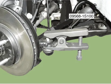 (3)Using SST(09568-1S100), separate the ball joint (A) from the knuckle.