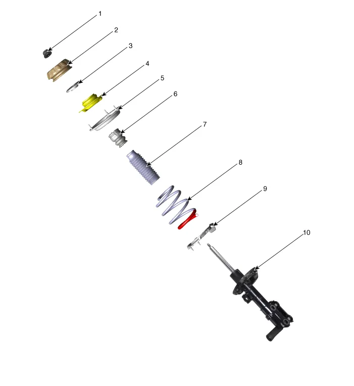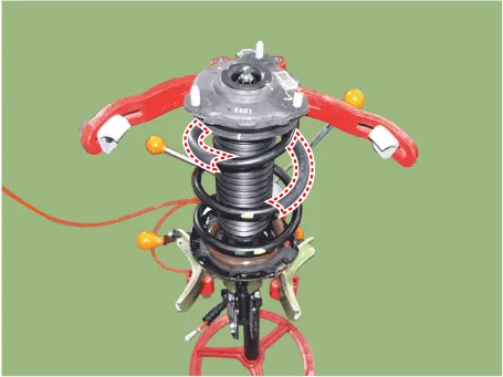 3.Remove the insulator, spring seat, coil spring and dust cover from the strut assembly.