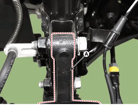• When loosening the nut (A), fix the outer hexagon of stabilizer bar link.