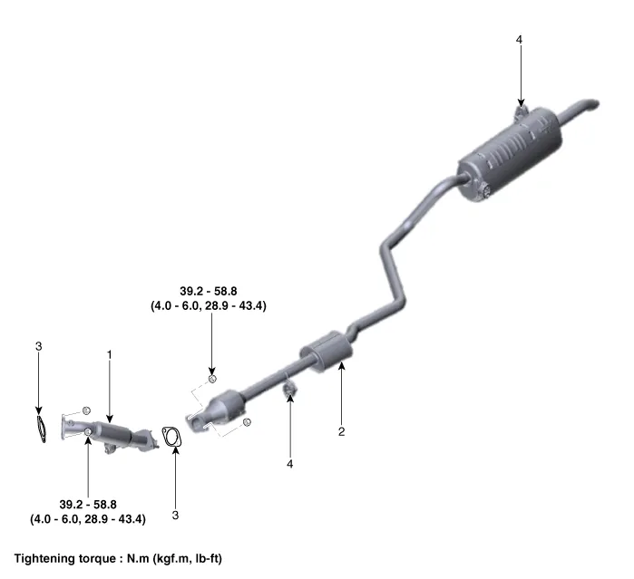 2.Tighten the catalytic converter and the center muffler with specified torque.