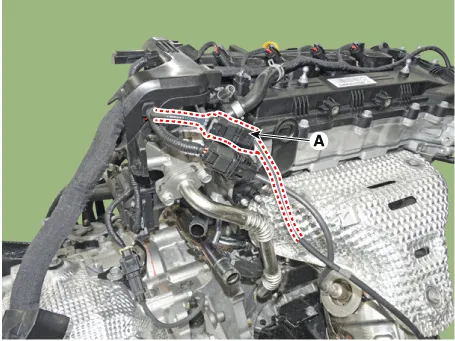 6.Disconnect the EGR cooler inlet and outlet hoses (A).