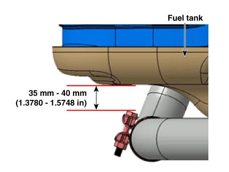 • The gap between the head of the clamp bolt and the fuel tank shall range from 35 mm (1.3780 in) to 40 mm (1.5748 in).