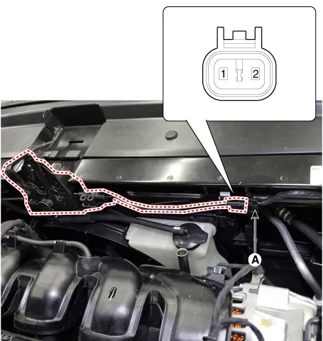 1.Disconnect the connector (A) and bolts from the hood switch.