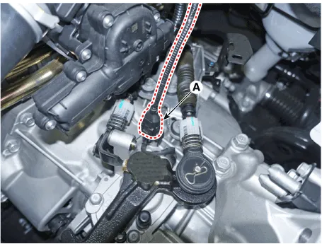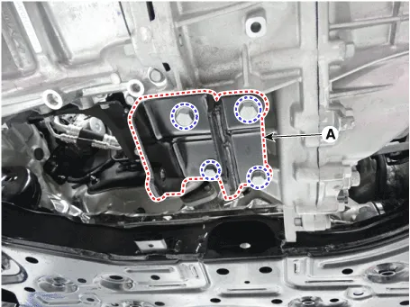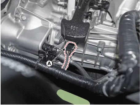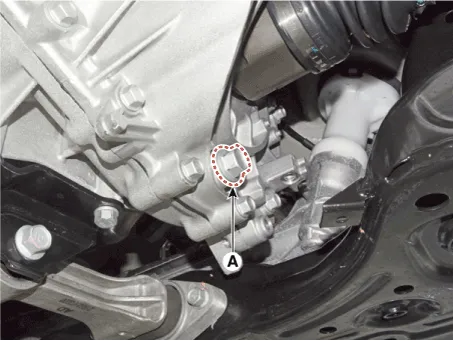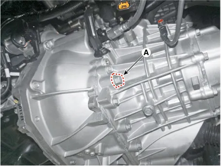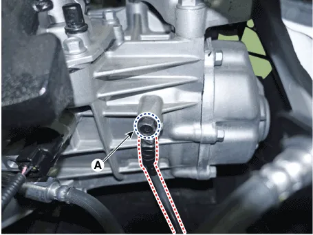 3.Drain the manual transaxle oil after loosening the drain plug (A) and then install the drain plug with new gasket.
