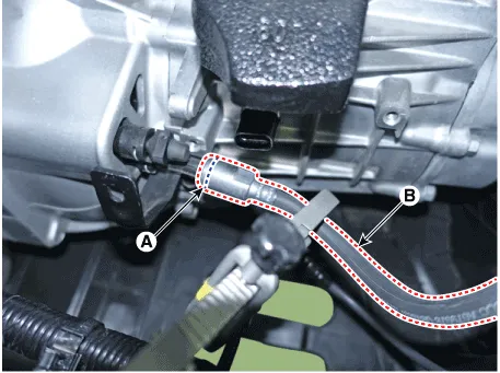 9.Remove the clip (A) and then separate the concentric slave cylinder (B).