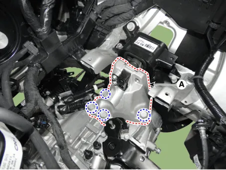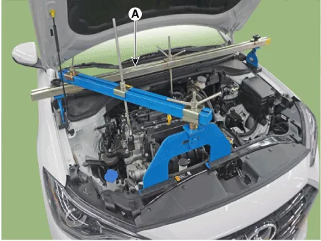 12.Using the engine support fixture (A), hold the engine and transaxle assembly safely.