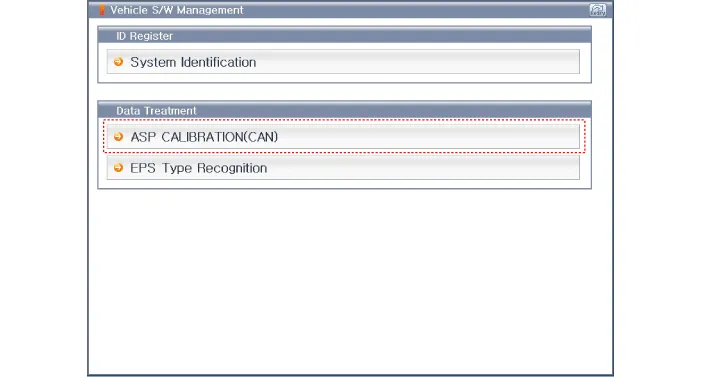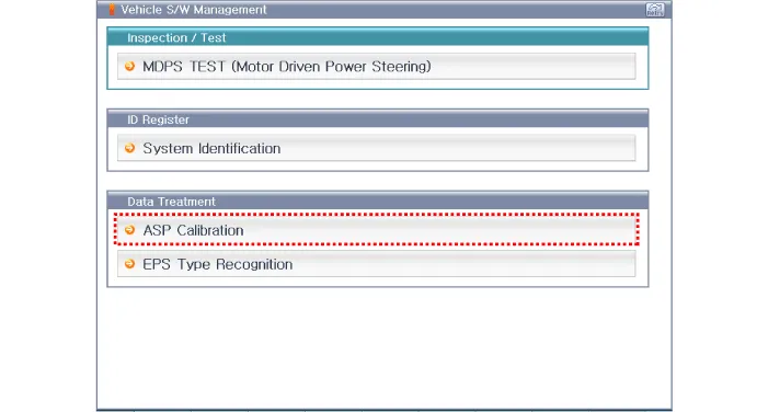 4.After Selecting the "vehicle model" and "system", select the "ASP Calibration" on GDS vehicle selection screen.