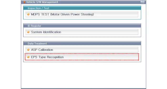 • When missing the EPS Type Recognition, occure a problem with motor driven power steering performance.