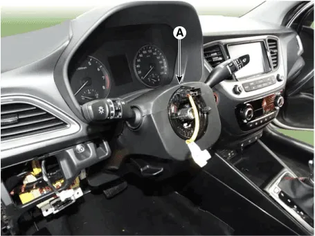 1.Loosen the bolt (A) and then disconnect the universal joint assembly from the steering column assembly.