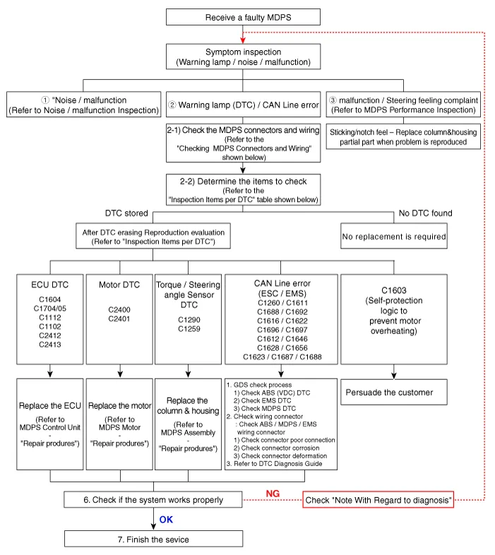 Must be replaced the MDPS assembly if occur damage or problem. Check the TAS wiring in case of C1259/C1290 DTC.