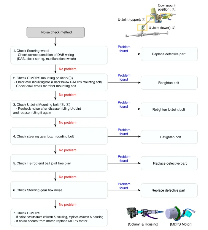 ShaftInsufficient steering effort (Uneven between LH and RH) Do not use the impacted MDPS