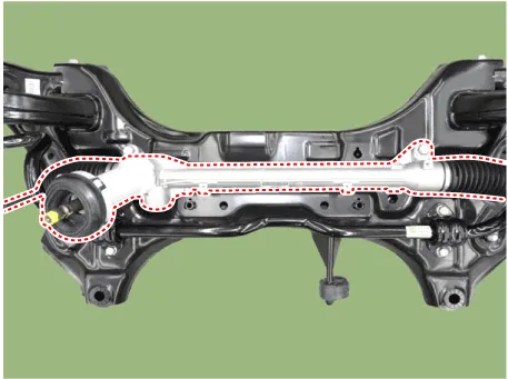 11.Remove the steering gearbox from the front sub frame by loosening the mounting bolts.
