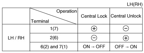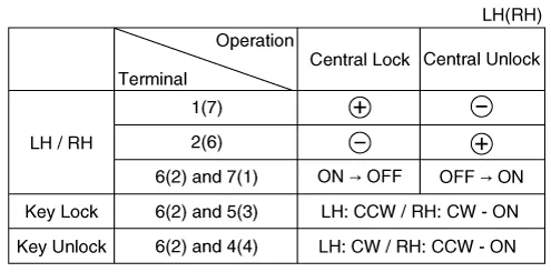 4.Check actuator operation by connecting power and ground according to the table. To prevent damage to the actuator, apply battery voltage only momentarily.