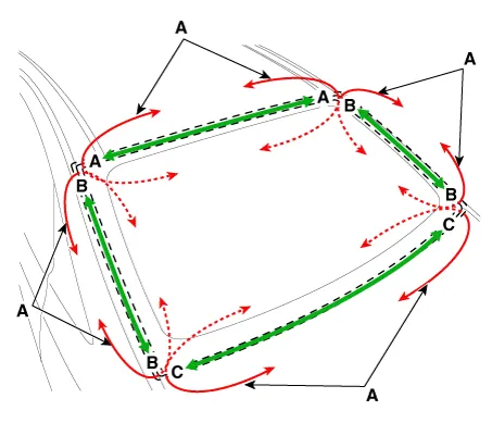 7.Cut off the sealant on (A - A), (B - B), (C - C), while pulling a piano wire (A) left and right.