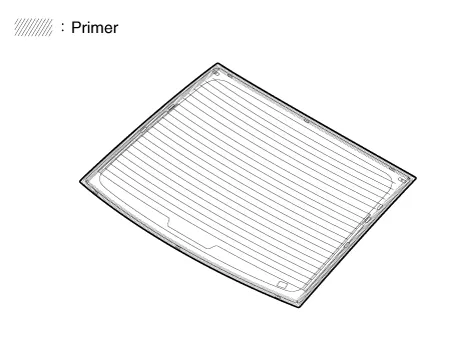 • Never touch the primed surface with your hand. If you do, the adhesive may not bond to the glass properly, causing a leak after the rear window glass is installed.