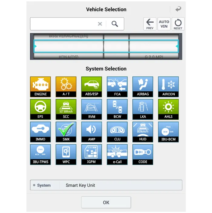 4.Select the SMK' to be checked in order to check the vehicle with the tester.