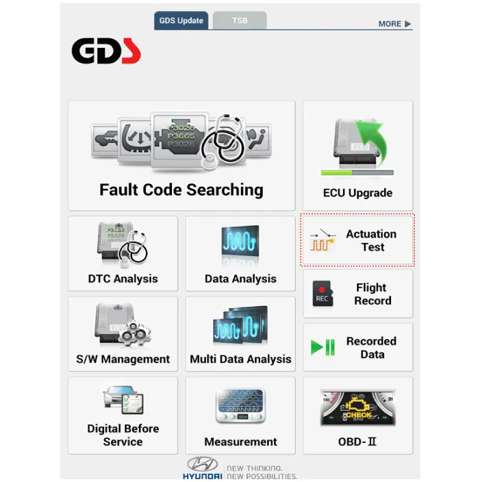 1.Connect the DLC cable of GDS to the data link connector (16 pins) in driver side crash pad lower panel, turn the power on GDS.