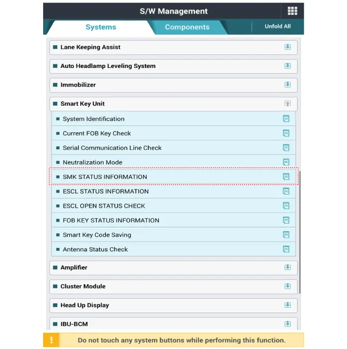 3.Select the 'Smart Key Unit' and 'SMK STATUS INFORMATION'.