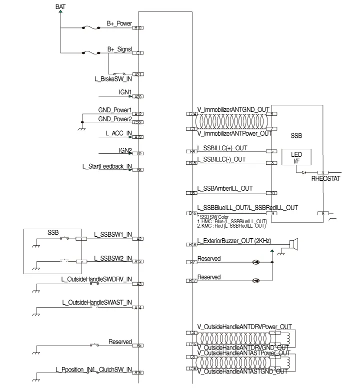 | 16 | P Position input / Clutch switch input | SSB Illumination (Blue) output SSB Illumination (Red) output | Outside handle antenna assist ground output |