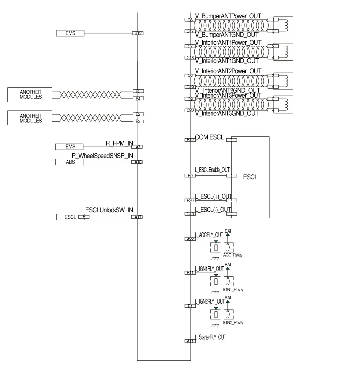 | 20 | IGN 2 | ESCL (+) output | Interior antenna 3 groud output |