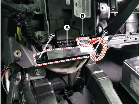 3.Remove the interior 1 antenna (A) after loosening the mounting screws (2EA) and disconnecting the connector (B).
