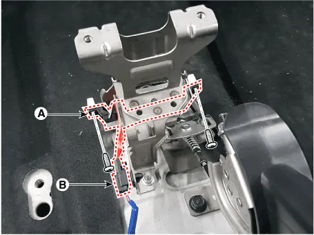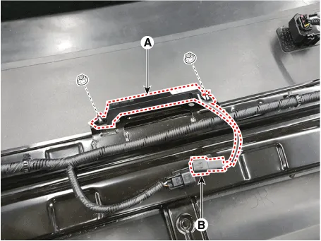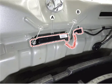 3.Remove the interior 3 antenna (A) after loosening the mounting nuts(2EA) and disconnecting the connector (B).