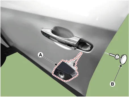 4.Remove the door outside handle cover (A) after seperating the plug hole from the door and loosening the mounting bolt.