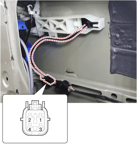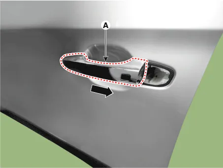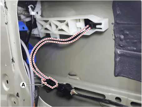 1.Disconnect the front door outside handle connector (A).